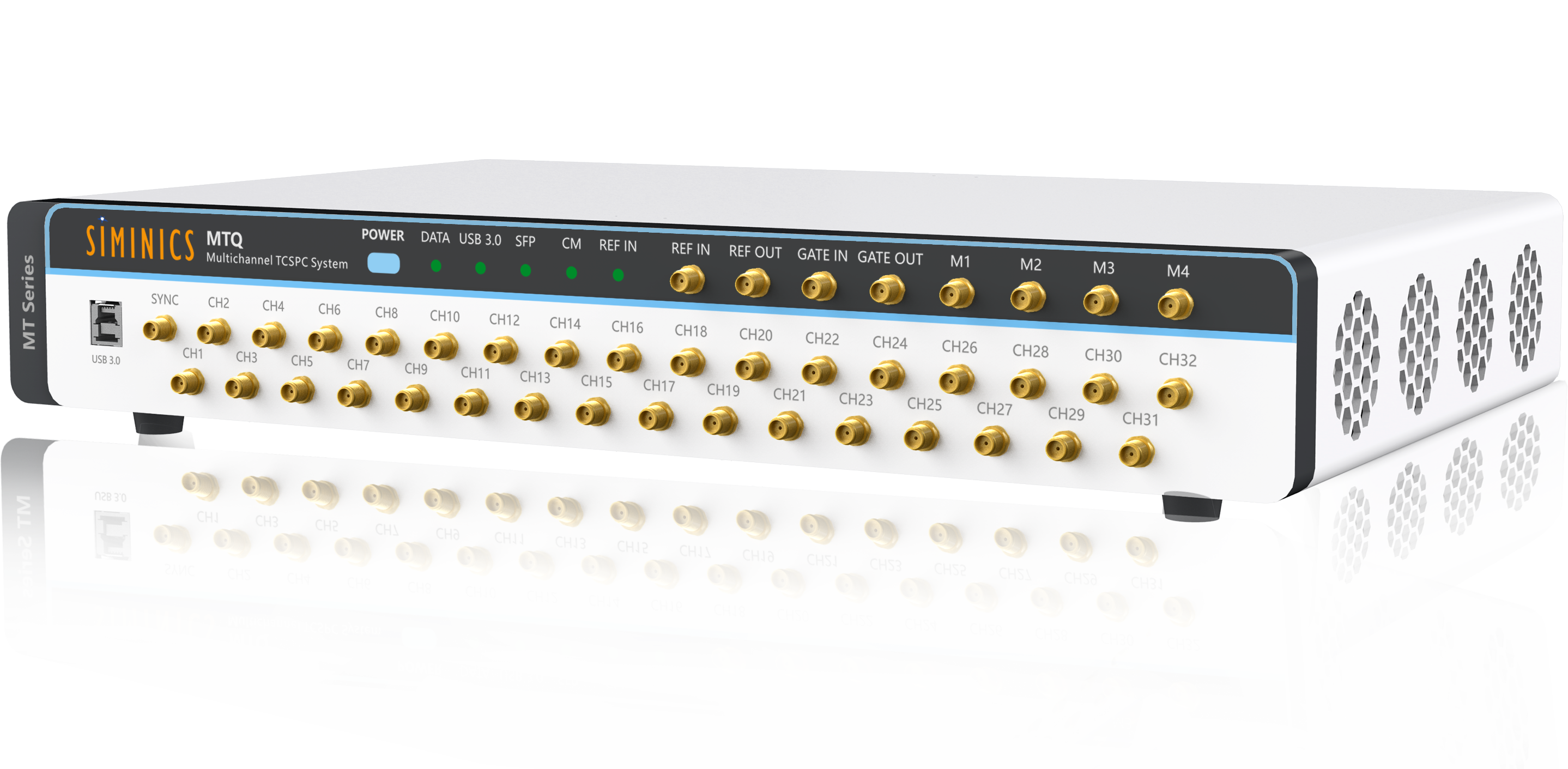 MTQ是星秒科技最新的多通道高带宽时间相关单光子计数系统。基于先进的时间测量芯片方案,MTQ最多可支持32通道的并行测量;采用高速光学传输接口,其数据传输带宽达到创纪录的40Gbit/s,可以支持高达1G/s的光子事件传输率。在此基础上,MTQ依然保持着优异的时间特性,其最小时间分辨率低至1ps, 通道RMS时间抖动小于8ps。非常适合高速高密度的光子信号测量场景,例如高分辨激光雷达成像、高速量 子保密通信、多光子纠缠、荧光寿命成像等应用。