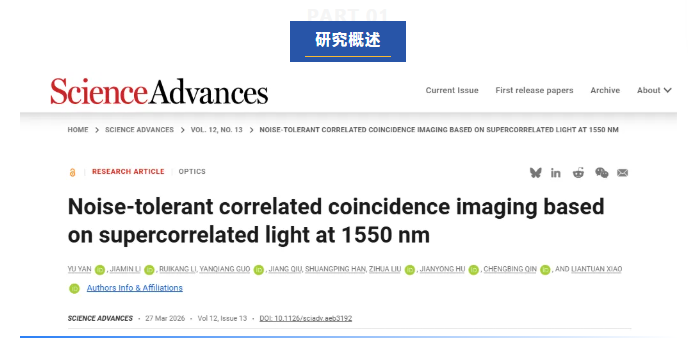 近日,太原理工大学肖连团教授团队在国际顶级期刊《Science Advances》发表重要研究成果,提出基于1550 nm超关联光源(SCL)的抗噪声关联符合成像(CCI)技术,成功攻克传统单光子成像技术在强噪声环境下成像失效的行业难题。