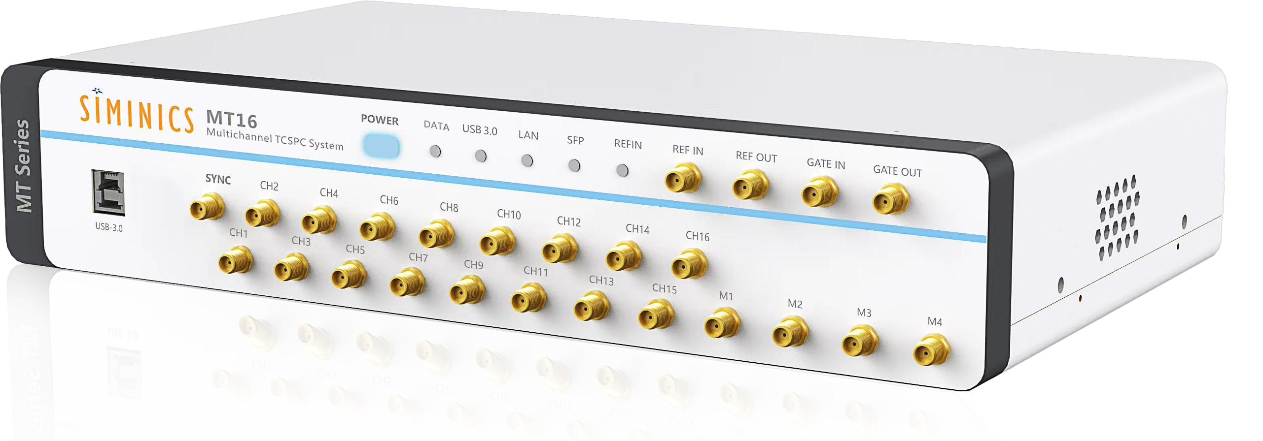 MTQ是星秒科技最新的多通道高带宽时间相关单光子计数系统。基于先进的时间测量芯片方案,MTQ最多可支持32通道的并行测量;采用高速光学传输接口,其数据传输带宽达到创纪录的40Gbit/s,可以支持高达1G/s的光子事件传输率。在此基础上,MTQ依然保持着优异的时间特性,其最小时间分辨率低至1ps, 通道RMS时间抖动小于8ps。非常适合高速高密度的光子信号测量场景,例如高分辨激光雷达成像、高速量 子保密通信、多光子纠缠、荧光寿命成像等应用。