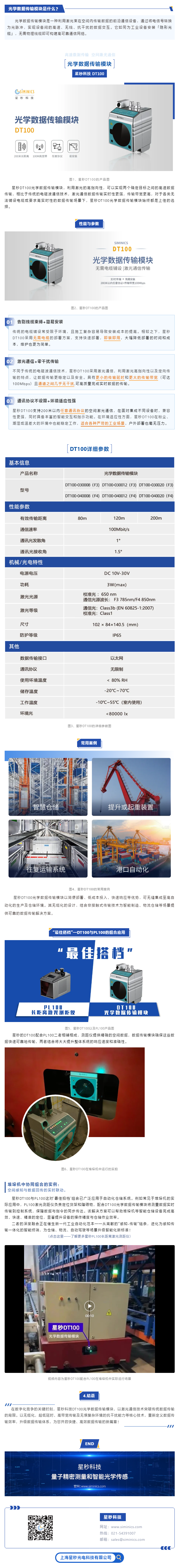 电缆布线的繁琐、传统电磁波通信技术传输延时过高、传输带宽太小、通道之间避免不了的干扰。传统通信方式正成为数字化转型的一道隐形枷锁——星秒DT100光学数据传输模块正将通信技术重新定义,让数据真正实现‘光速抵达’!"