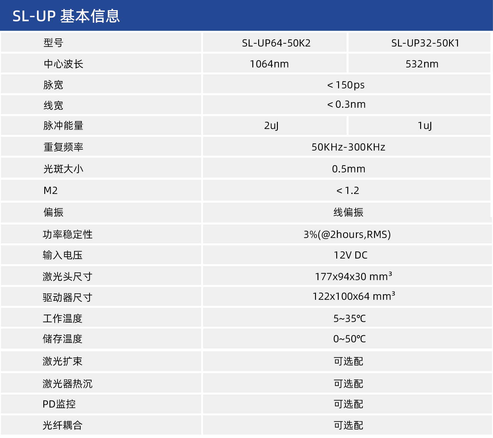 图5、星秒SL系列SL-UP脉冲激光器的详细参数图